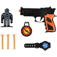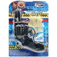 Игровой «Набор полиции» оценят юные меткие стрелки.  С ружьём маленький герой будет придумывать увлекательные спецзадания, защищать мир и стоять на страже порядка. С таким оружием ребёнок станет самым метким стрелком. Подойдёт для активных игр на воздухе и в помещении. Игра с игрушечным оружием развивает:  фантазию, ловкость, воображение, координацию движений, внимание.  В набор входят: ружьё с прицелом, 3 пули, присоски.